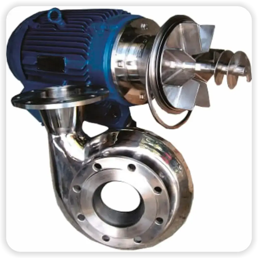 Esta bomba se caracteriza por un sistema de bombeo realizado por rotores que se asemejan a dos tornillos. Está indicada para su uso en la industria láctea, alimentos, bebidas, cosméticos y otras diversas aplicaciones. El flujo de esta bomba es uniforme y en sentido axial, por lo que no presenta alteraciones en el volumen ni en las propiedades físicas del producto. Es ideal para fluidos sensibles al cizallamiento, con alta capacidad de succión. Puede bombear fluidos con alta viscosidad, pero también puede utilizarse con fluidos de baja viscosidad, por lo que se puede utilizar como bomba de alimentación CIP.