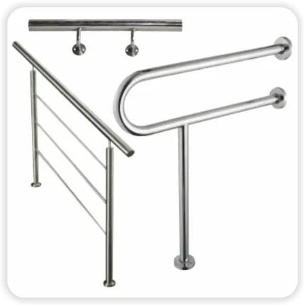 Pasamanos para escaleras con fijación a la pared y/o al piso. Barra de apoyo, barandillas de baño (para personas mayores y/o en condición de discapacidad).