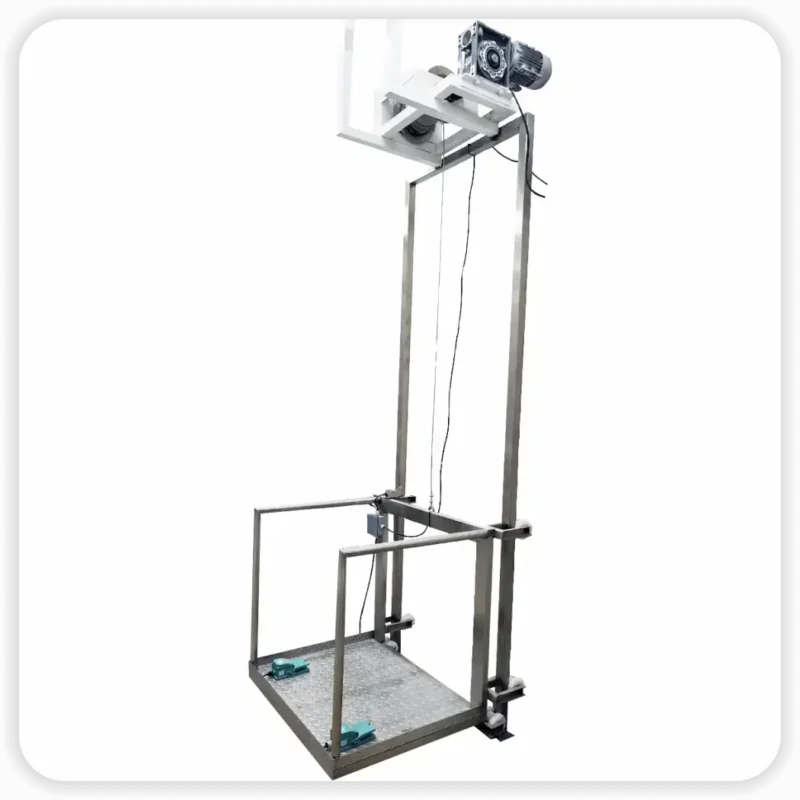 Equipo en acero inoxidable para el desplazamiento vertical de operarios.